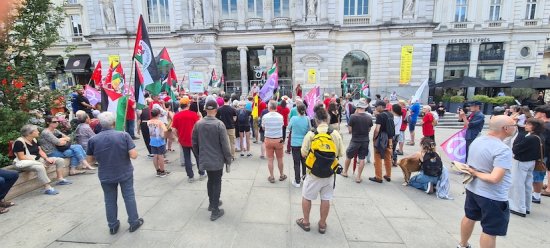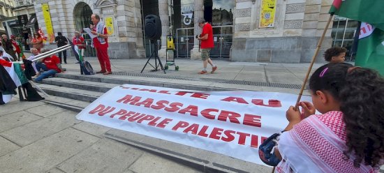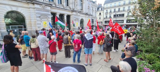 Samedi 2 août 2025, environ 200 personnes ont répondu à l’appel de l’AFPS et de ses partenaires associatifs, syndicaux et politiques. Outre l’intervention d’un responsable de l’AFPS49 que nous reproduisons ici, un moment très fort a été celui où une jeune étudiante gazaouie a pris la parole pour rapporter le massacre survenu il y a un mois dans le café al-Baqa situé sur le front de mer, café où se retrouvaient beaucoup de jeunes et parmi eux un de ses amis, journaliste et artiste, auquel elle a rendu un vibrant hommage. Un représentant d’Amnesty International a aussi évoqué avec émotion le sort des enfants de Gaza. Rendez-vous pris pour samedi 9 août prochain, même lieu, place du Ralliement à Angers, même heure, 15h. Gaza, Angers est avec toi !