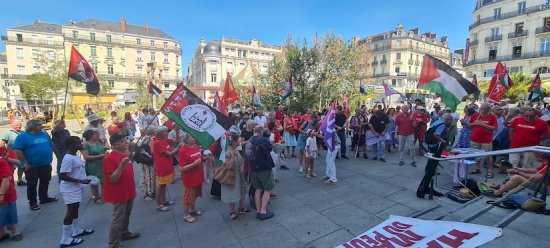 Ce sont 250 personnes qui, samedi 9 août 2025, ont de nouveau participé au rassemblement angevin hebdomadaire de solidarité avec la Palestine. Alors que le gouvernement d’extrême droite israélien s’apprête à occuper militairement l’intégralité de la bande de Gaza, probable prélude à de nouveaux massacres et à une épuration ethnique massive, le soutien au peuple palestinien doit plus que jamais continuer et se renforcer.