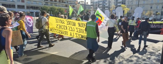 Une marche mondiale pour le Climat et la justice sociale était organisée ce dimanche 28 septembre dans tout le territoire, et à Angers à 14h, place Leclerc. Appelée tardivement et alors que les dernières marches angevines pour le climat remontaient à 2022, celle de ce dimanche n’a pu réunir que 260 personnes. Cela n’a pas empêché que - soleil aidant - elle soit combative et joyeuse, ce qui laisse augurer une suite avant peu. Toutes et tous ensemble, changeons le système, pas le climat !