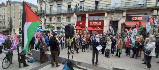 Environ 150 personnes ont de nouveau répondu présents à Angers à l’appel de l’AFPS 49 et de ses divers partenaires associatifs, syndicaux et politiques, au nombre de 23, pour exiger d’Israël de mettre fin au nettoyage ethnique, à l’occupation, à la colonisation, et à l’apartheid en Palestine.