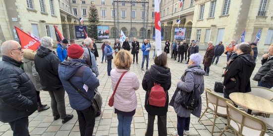 Deux rassemblements se sont tenus à Angers, samedi 13 décembre au cours de l’après-midi. Le premier célébrait les 120 ans de la séparation de l’Église catholique et de l’État ; appelé par le Collectif Vigilance Laïcité, il a réuni un peu plus de 70 personnes devant la préfecture. Le second était le rassemblement hebdomadaire de solidarité avec le peuple palestinien, le 104e depuis le début des bombardements massifs et de la relance de la colonisation de la Cisjordanie par l’État d’Israël ; il a réuni 150 personnes, place Mondain Chanlouineau. Comptes rendus...