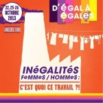 En dépit de la période de vacances scolaires et de la morosité sociale, le cru 2013 du Festival féministe angevin D’Égal à Égales, consacré cette année aux inégalités Hommes/Femmes au travail, aura comme les deux années précédentes attiré un public nombreux et divers. Après l’ouverture du mardi à l’Espace culturel, les salons Curnonsky ont été vendredi soir le lieu d’un premier meeting et samedi celui de trois tables rondes, d’une exposition, d’un atelier pour les enfants et d’un spectacle le soir. Une manifestation symbolique et festive a également eu lieu le samedi en fin d’après-midi place du Ralliement. Chacune de ces initiatives a réuni entre 50 et 200 personnes.